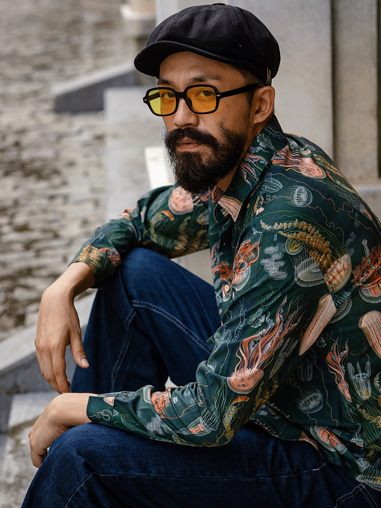 ハワイアンシャツはコーディネートのアクセントに必須のアイテム!! 30代からのファッションには色気も大事!! チェックしてみてください!! #柄シャツ #半袖柄シャツ #オープンカラーシャツ #レギュラーカラーシャツ