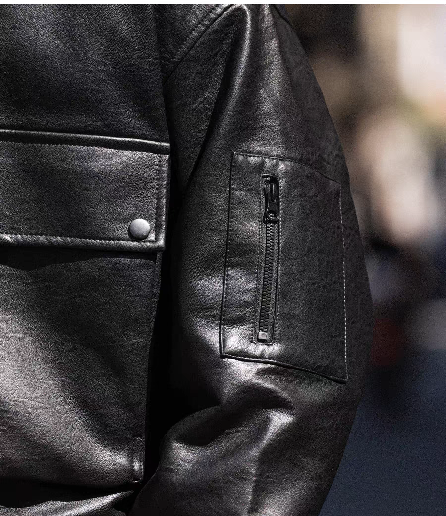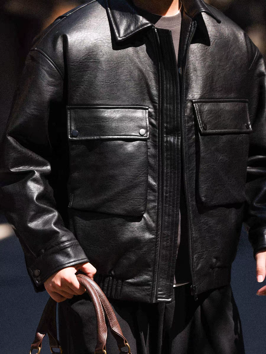 生地は人工レザーですが、チープさは一切なし。しっとりとした質感と鈍く光る表面感は、本革のような重厚さと高級感を漂わせます。それでいて扱いやすく、雨や汚れにも強い。バイク乗りにとって“気を使わずに着倒せる”というのは大きな魅力。ツーリングでも普段使いでも、ガシガシ着こなして自分のクセを刻んでいける一着です。