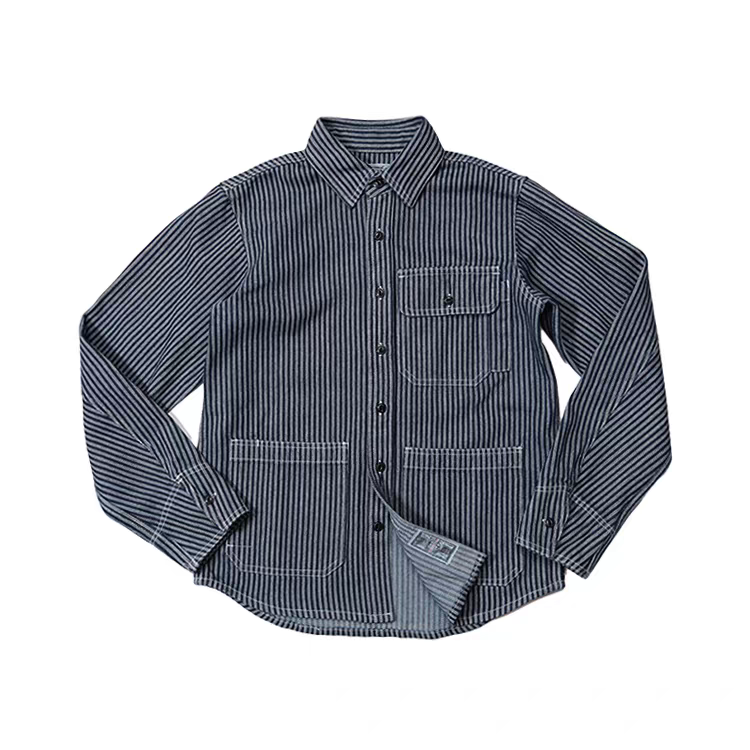 OKONKUWO アメリカンヴィンテージワークシャツ ストライプ 長袖シャツ